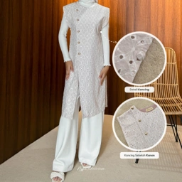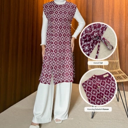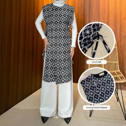 🔹Readystock 🔹 khusus seri (4) : Bukaan kancing berada di sebelah kanan pakai 🔹Detail Produk : Outer dengan model tanpa lengan, memakai bahan Florence dan furing diamond. Outer ini memiliki ciri khas 6 buah kancing bungkus dan motif kain yang unik. Ada 2 seri Dalila Outer yaitu seri kancing samping kanan dan kiri sebagai pengait, dan seri tali bagian kanan kiri sebagai pengaitnya. 🔹 Bahan : Florence dan Diamond