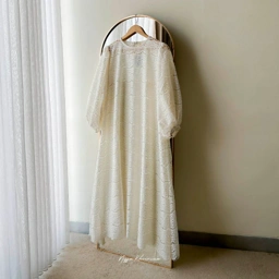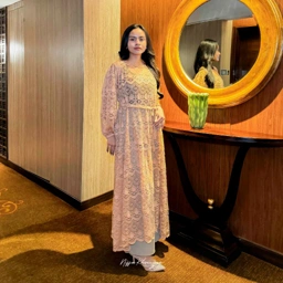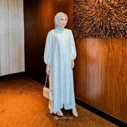 Dress cutting A-Line berbahan brokat dengan motif yg unik dan cantik. Bagian lengan model balon, memiliki 1 kancing flat gold dan model leher bulat, bagian belakang terdapat 2 kancing flat gold. Dania Dress Reborn sudah include belt senada yg bisa di lepas pasang.