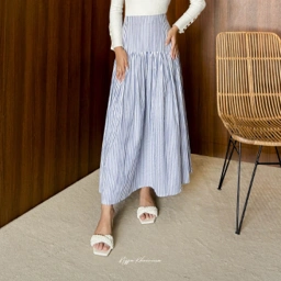 Arista Skirt Stripe By Nissa Khoirina (ROK SAJA) 🔹Readystock 🔹 Detail Produk : Arista Skirt Stripe dengan bahan katun stripe, model cutting rok ada jahitan pemisah sehingga membuat ilusi ruffle/kerutan, bagian samping kanan pakai terdapat resleting dan bagian belakang juga sudah terdapat karet elastis sehingga membuat nyaman pemakai. 🔹Bahan : Katun Stripe 🔹Detail Ukuran : A (S-M) Lingkar Pinggang : 64-84 cm Lingkar Pinggul : 108 cm Panjang Rok : 90 cm Ban Pinggang : 4 cm B (L-XL) Lingkar Pinggang : 66-94 cm Lingkar Pinggul : 112 cm Panjang Rok : 90 cm Ban Pinggang : 4 cm 🔹Ada 2 pilihan warna : 1 Denim 2 Sky Blue 🔹S&K Komplain : 1. Disclaimer apabila menerima produk (size/warna) yang salah ataupun produk reject/cacat dari seller (Tolong jangan dulu memberikan bintang 1 karena kami akan ganti 100% jika mendapatkan produk yang tidak sesuai). 2. WAJIB menyertakan VIDEO unboxing dan komplain maksimal 3 hari setelah paket diterima. 3. Produk belum dipakai, belum dicuci, dan HangTag produk masih utuh / belum dilepas. 4. Komplain kesalahan seller, ongkir ditanggung toko. Dan sebaliknya, komplain kesalahan customer, ongkir ditanggung buyer/pembeli. 5. Garansi komplain hangus apabila memberikan penilaian dibawah bintang 5. ORDER = sudah membaca informasi ini, terima kasih. Happy Shoping Ladies!