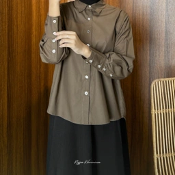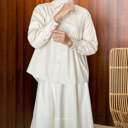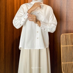 Azkia Basic Shirt By Nissa Khoirina (ATASAN SAJA) 🔹Detail Produk : Kemeja berkerah dengan bahan katun poplin, full kancing dan bagian pergelangan juga dilengkapi kancing sehingga sudah busui dan wudhu friendly. Ciri khas Azkia Basic Shirt ada di bagian pergelangan tangan yg memakai 4 kancing aktif dan bagian belakang kemeja lebih panjang. 🔹 Bahan : Cotton Poplin 🔹Detail Ukuran AZKIA seri-1 : A (S-M) = LD : 104 cm // Panjang Badan Depan : 60 cm // Panjang Badan Belakang : 65 cm // Bahu :12 cm // Kerung Lengan : 52 cm // Panjang Lengan : 53 cm