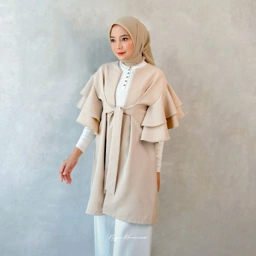Outer dengan bahan cotton polyester yangg nyaman, detail ruffle pada kedua lengan membuat look ladies yg memakai outer ini jadi makin stylish. Lidya Outer dilengkapi dengan tali yg sudah terjahit dengan outer sehingga menambah kesan feminim saat mengenakannya, apalagi dimix and match dengan inner rajut bynissa.