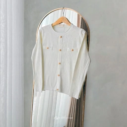 Hilda Top dengan bahan Wool Premium, tekstur kain lembut, ringan dan tidak bikin gerah dipakai aktivitas seharian. Kancing di Hilda Top hanya fantasi, jadi tidak bisa difungsikan. Bagian kanan kiri jugab terdapat kancing fantasi yg menambah look elegant.