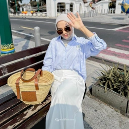 Farah Shirt dengan bahan Katun Strip yang memiliki motif strip, tekstur kain lembut dan nyaman dipakai aktivitas sehari-hari. Farah Shirt memiliki ciri khas renda di bagian pergelangan tangan, 2 buah kancing di bagian pergelangan tangan sehingga wudhu friendly, dan aksen pita renda bagian dada sebelah kiri pakai menambah kesan feminime pemakai.