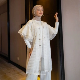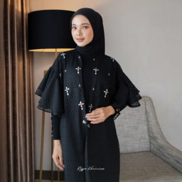 Felisya Outer dengan material Lace Diamond yang super lembut, nyaman dipakai, detail lengan ruffle dengan taburan payet cantik membuat look outer ini semakin elegant dipakai Ladies.