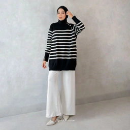 Sweater rajut stripped wool dengann desain simpel namun terlihat elegant, dilengkapi dengan kancing dan motif garis pada sweater ini membuat tampilannya sangat menarik!