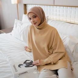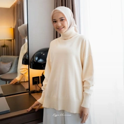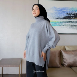 Mona Sweter memiliki bentuk kerah turtleneck dan bagian bawah sisi kanan kiri terdapat belahan. Sweater rajut berbahan Knit Premium ini terlihat simpel namun sangat elegant saat di mix and match dengan produk lain.