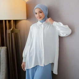 Sahila Shirt berbahan Seamless kombinasi Plisket bagian belakang, dengan konsep Hidden Button, membuat look kemeja ini rapi, elegant, dan cocok utk acara apapun.