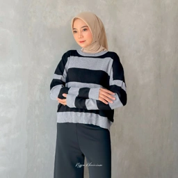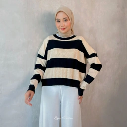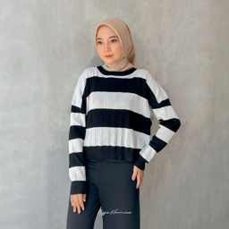 Sweater rajut strip tidak bikin gerah dipakai aktivitas keseharian, dengan desain simpel ,namun terlihat elegant, motif garis pada sweater ini membuat tampilannya sangat menarik.