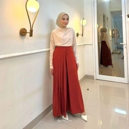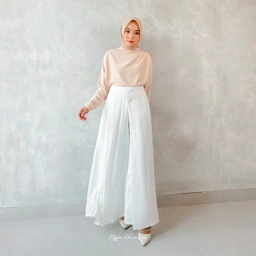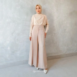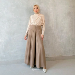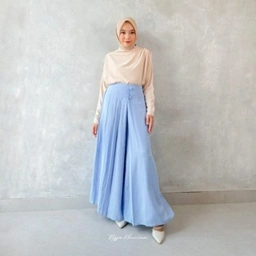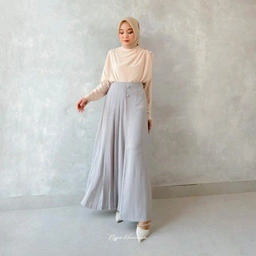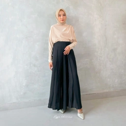 Kulot semi rok dengan cutting lebar, menggunakan bahan torino yg nyaman. Terdapat variasi kanicng bagian depan dan aksen pleats atau lipit pada sisi kanan membuat kulot ini terlihat unik seperti kita memakai rok lebar.