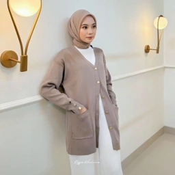 Cardigan dengan bahan rajut premium yg nyaman, hangat dan dilengkapi kancing di area depan serta saku dibagian bawah kanan kiri, menambahkan aksen feminim saat ladies kenakan.