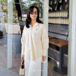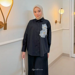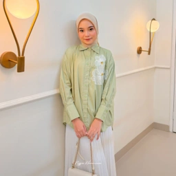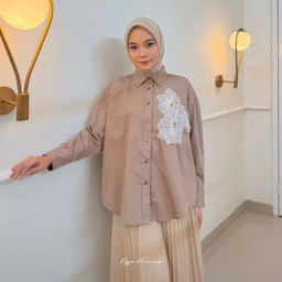 Kemeja bahan cotton poplin dengan payet dan bordir cantik bagian kiri pakai, yang cocok dikenakan untuk kegiatan semi formal maupun formal. Pergelangan tangan ada kancing, dan kemeja sudah full kancing jadi wudhu friendly dan busui friendly.