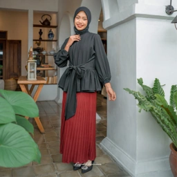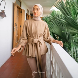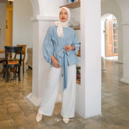 Blouse dengan desain simpel tapi tetap terlihat stylist ketika dipakai ladies, dipercantik dengan detail lengan bishop dan tali disisi kanan kiri.