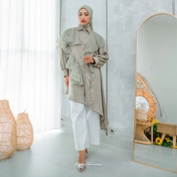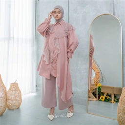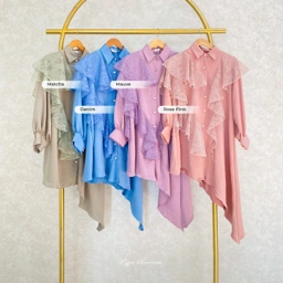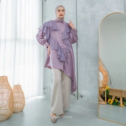 Tunik dengan desain yg unik dipercantik dengan ruffle dibagian depan hingga belakang tentunya akan memberikan kesan elegant saat dipakai, bisa untuk daily maupun acara formal ladies.