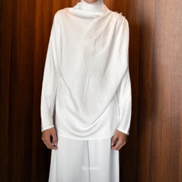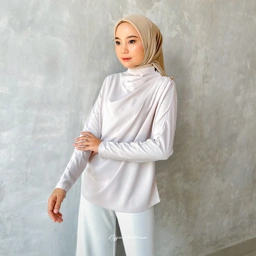 Blouse dengan bahan seamless, terdapat lipit dibahu bagian kiri dan 3 kancing emas menambgah kesan mewah look blouse, ujung lengan terdapat resleting jadi wudhu friendly dan dibagian belakang menggunakan resleting sehingga memudahkan pemakaian. Dengan look feminim, blouse ini cocok untuk daily activity Ladies.