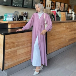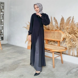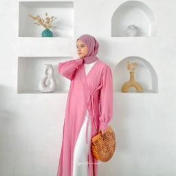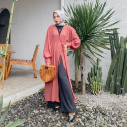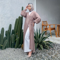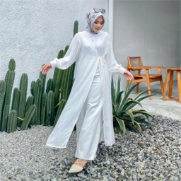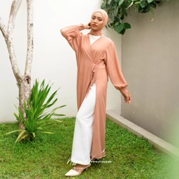 Outer dengan material Ceruty Baby Doll Armani dengan karakter flowly/jatuh dan membuat ladies yang memakai terlihat lebih ramping. Bagian lengan puffy, ada tali di kanan dan kiri yang bisa kamu kreasikan dan menambah style dari outer ini.