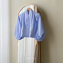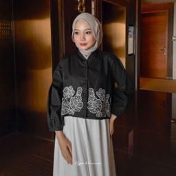 Kalina Kemeja Bordir Kerah Ala Kebaya berbahan katun, model kerah setali (kerah yang dijahit menyatu dengan garis leher), sudah diilengkapi kancing bulat, bagian depan bawah kanan kiri dipercantik dengan bordir bunga, model lengan balon (desain lengan baju yang mengembang) dan bagian pergelangan tangan sudah dilengkapi kancing bulat mempermudah pemakaian.