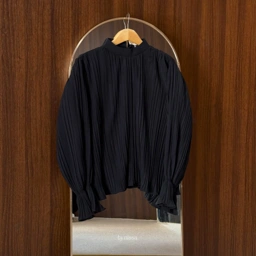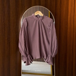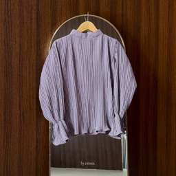Lilian Blouse berbahan Pleats Polyester dengan tekstur lipatan-lipatan kecil yang halus, model lengan terompet dengan tambahan karet, bagian belakang kerah sudah dilengkapi resleting sehingga mempermudah pemakaian.
